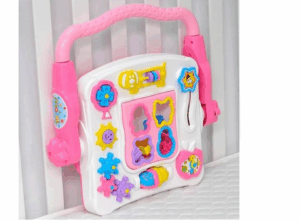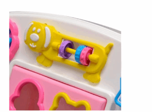 Função 4 em 1: Andador, apoio de chão, mesa de atividades e suporte para berço – Bichinhos de encaixar – Alça móvel – Com sons – Relógio com ponteiros móveis – Em plástico resistente e atóxico – Certificado pelo INMETRO – Recomendado para crianças acima de 1 ano.