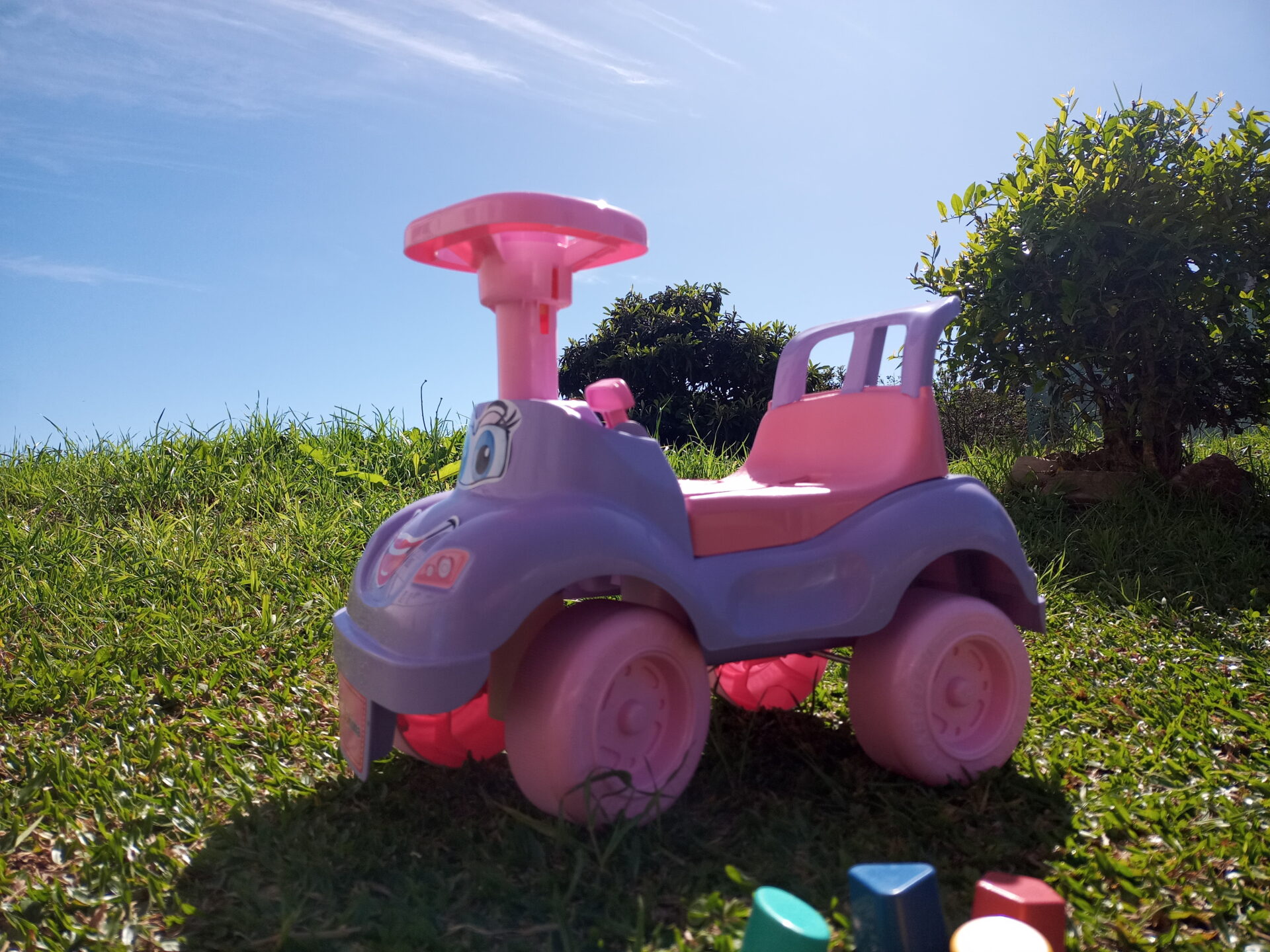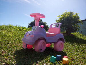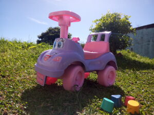 A Totokinha vem com acessórios que emite som com a buzina, chavinha que vira e a troca de marcha, estimulando ainda mais os pequenos.