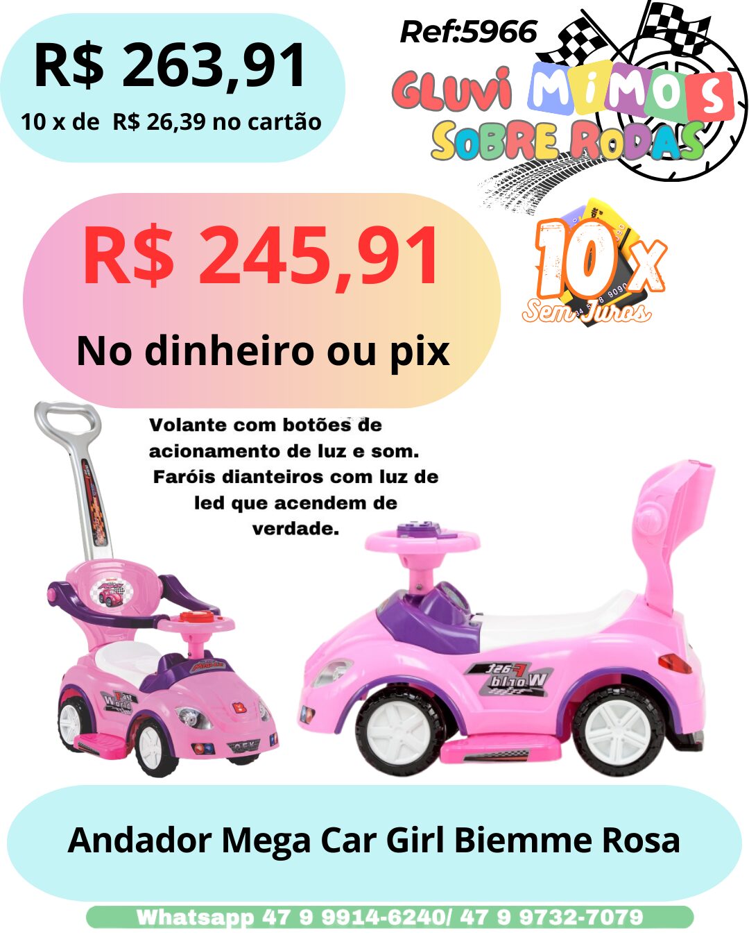 Seja o primeiro a avaliar “Andador Mega Car Girl Biemme Rosa”