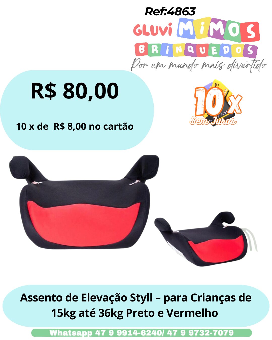 Assento de Elevação Styll – para Crianças de 15kg até 36kg Preto e Vermelho