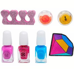 Com esse kit, as crianças desenvolvem coordenação manual e atenção aos detalhes enquanto personalizam as unhas com cores vibrantes e muito brilho. Os esmaltes garantem cobertura uniforme e longa duração, e o glitter adiciona aquele toque extra de magia, estimulando a expressão criativa em cada pincelada.