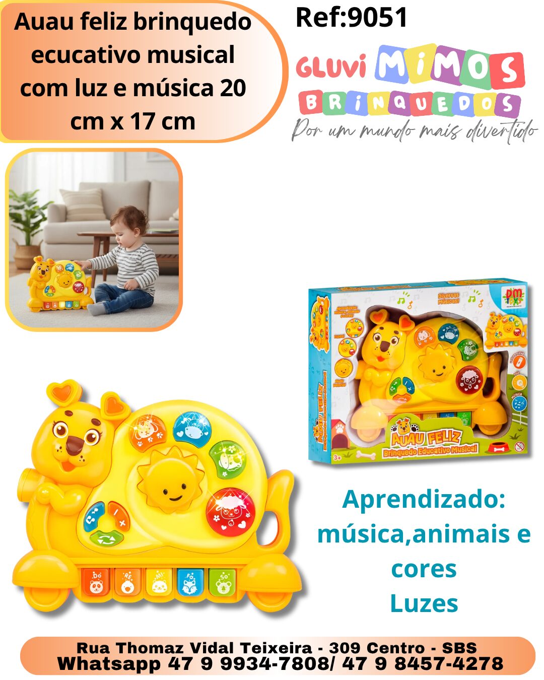 Auau feliz brinquedo ecucativo musical com luz e música 20 cm x 17 cm