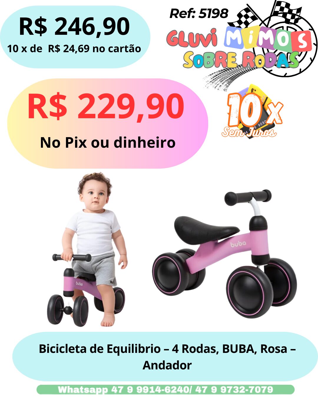 Seja o primeiro a avaliar “Bicicleta de Equilibrio – 4 Rodas, BUBA, Rosa – Andador”
