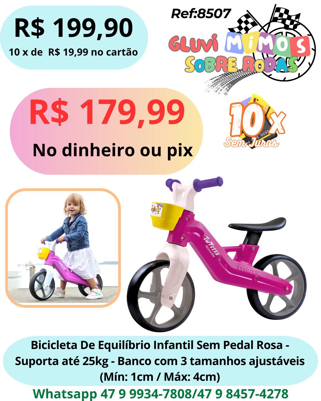 Ideal para iniciantes, esse modelo permite que as crianças aprendam a equilibrar-se e a coordenar seus movimentos antes de dar o próximo passo para uma bicicleta com pedais. É a escolha perfeita para os primeiros passeios de duas rodas.