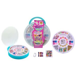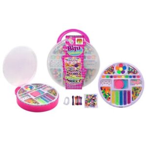 o Kit Maleta Redonda Biju Collection É Lindo! Brinque De Criar Suas Próprias Bijuterias! Vem Com Miçangas Em Diversas Formas E Cores, Pingentes E Cordões.