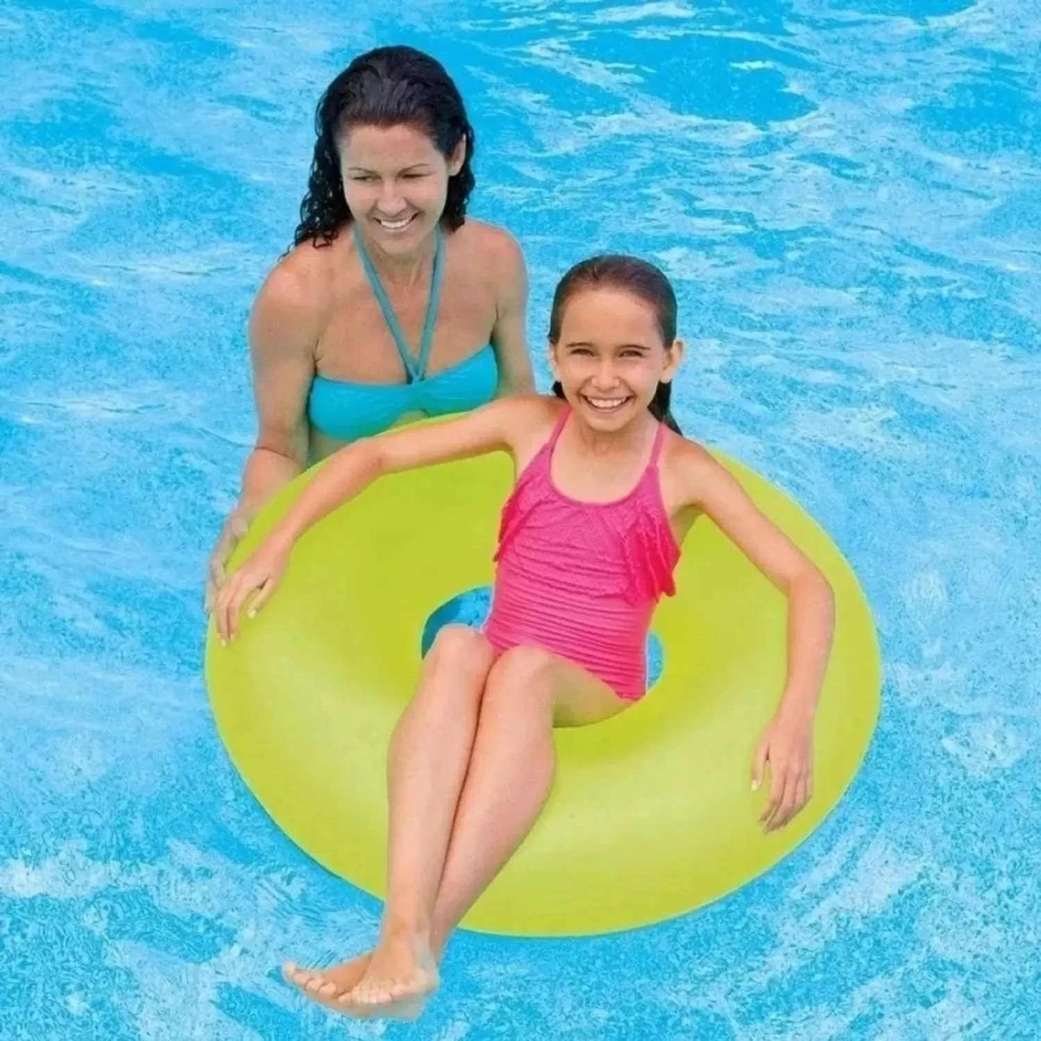 Com cores alegres e vibrantes, a Boia Neon Mor tem tudo a ver com o verão! Disponível nas cores rosa, azul e verde, elas são recomendadas para crianças acima de 10 anos. Produzidas em PVC resistente, vão acompanhar a garotada nas maiores aventuras nas águas Contando com uma câmara de ar independente, uma válvula de segurança e kit reparo, as Boias Neon além de garantir segurança, comodidade e lazer, contribuirão para decoração de sua piscina! Atenção! Este não é um equipamento salva-vidas. Nunca deixe crianças sozinhas perto da água sem supervisão de um adulto.