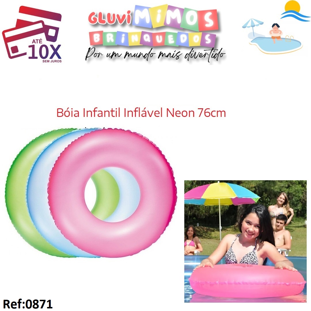 Bóia Infantil Inflável Neon 76cm Cores Diversas