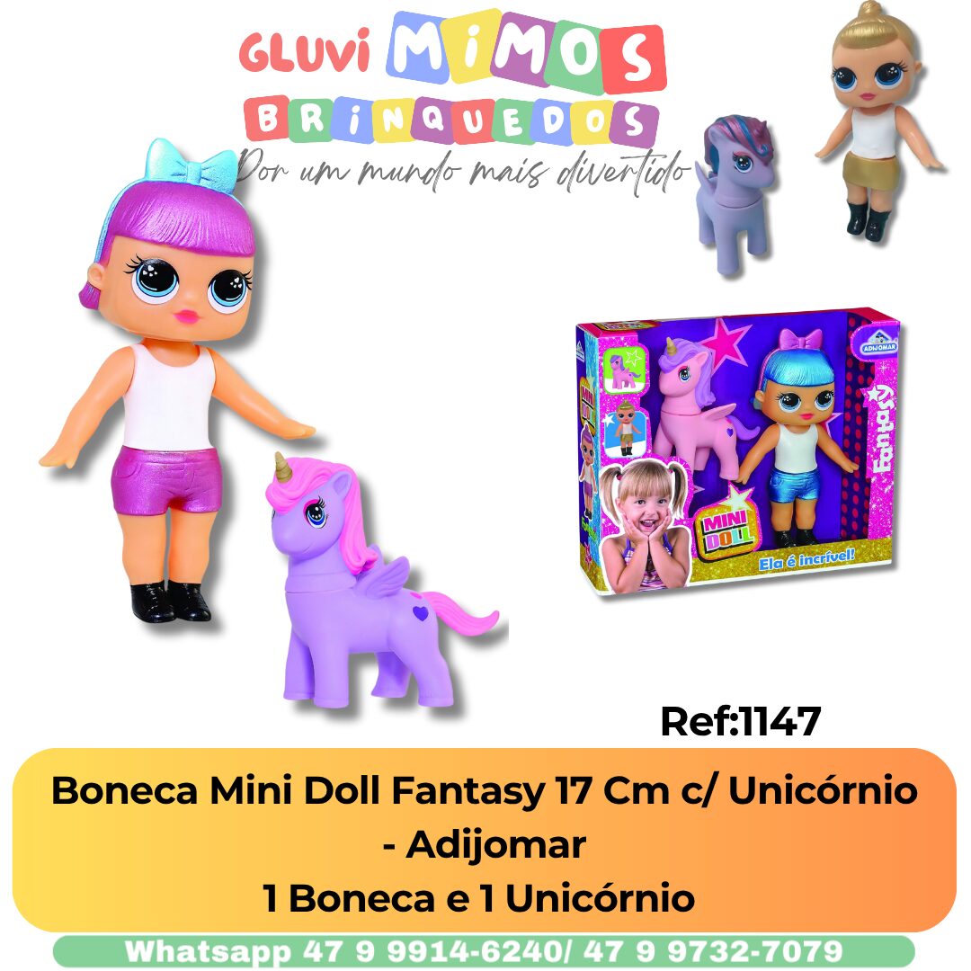 Boneca Mini Doll Fantasy 17 Cm c/ Unicórnio – Adijomar 1 Boneca e 1 Unicórnio