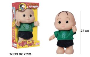 É fabricado em vinil atóxico, possui toque macio, e vem com uma linda roupinha.