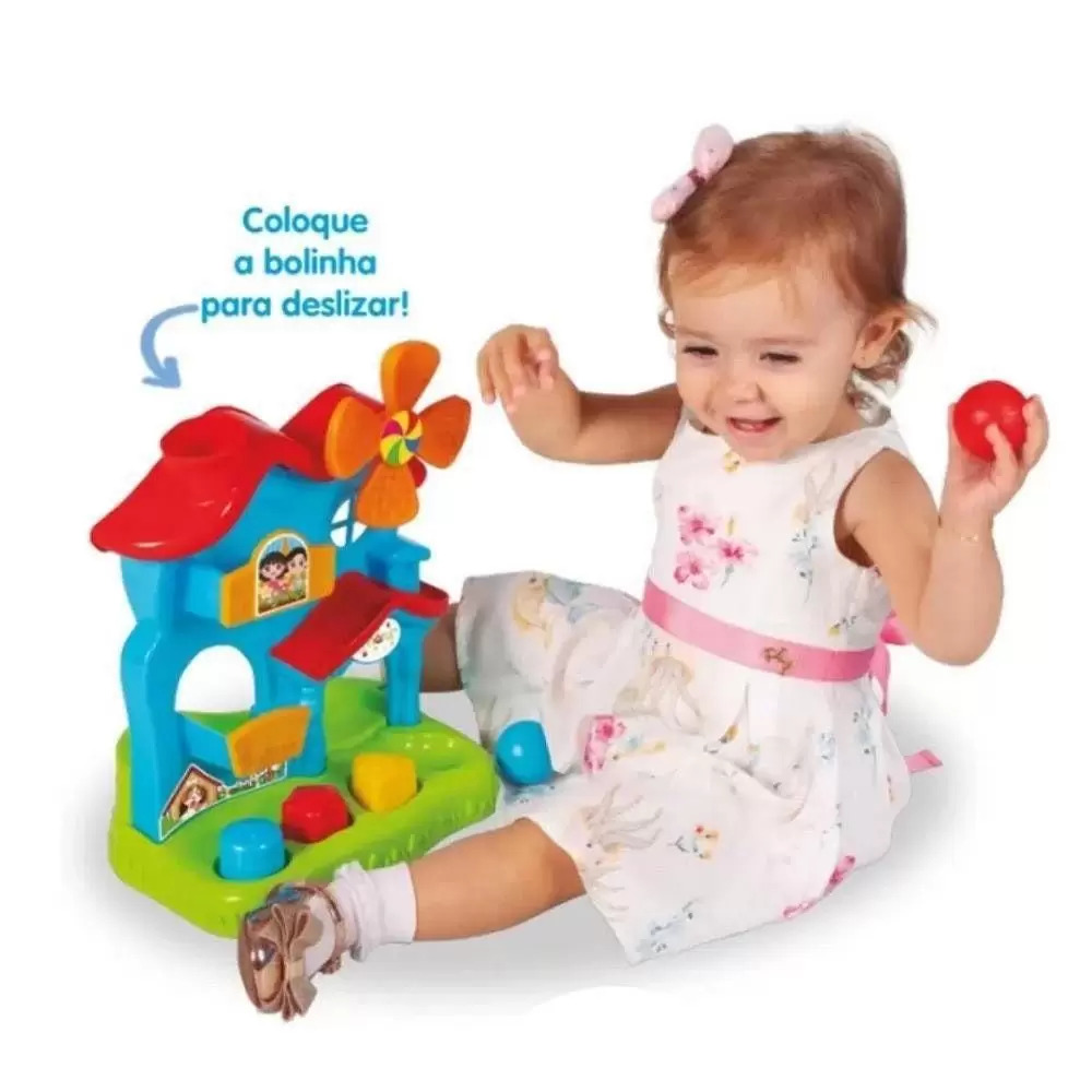 Esse catavento giratório vai fazer a cabeça do seu baixinho. Super colorido, interativo e didático, vai divertir enquanto ensina. Coloque a bolinha pela chaminé e veja ela deslizar por todo catavento até chegar a base da casinha. Vem com 03 cubos didáticos para a criança encaixar nos locais certos.