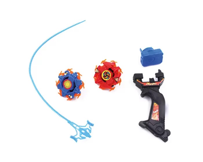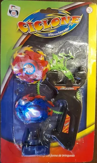acompanha: – 2 Peões em cores sortidas com pontas de plástico – 1 lançador com 1 corda – 1 Suporte para o lançador