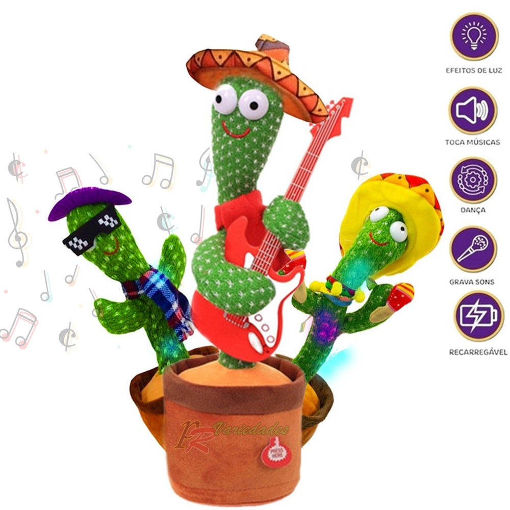 1x cacto dançante falante. , um cabo usb pra recarregar