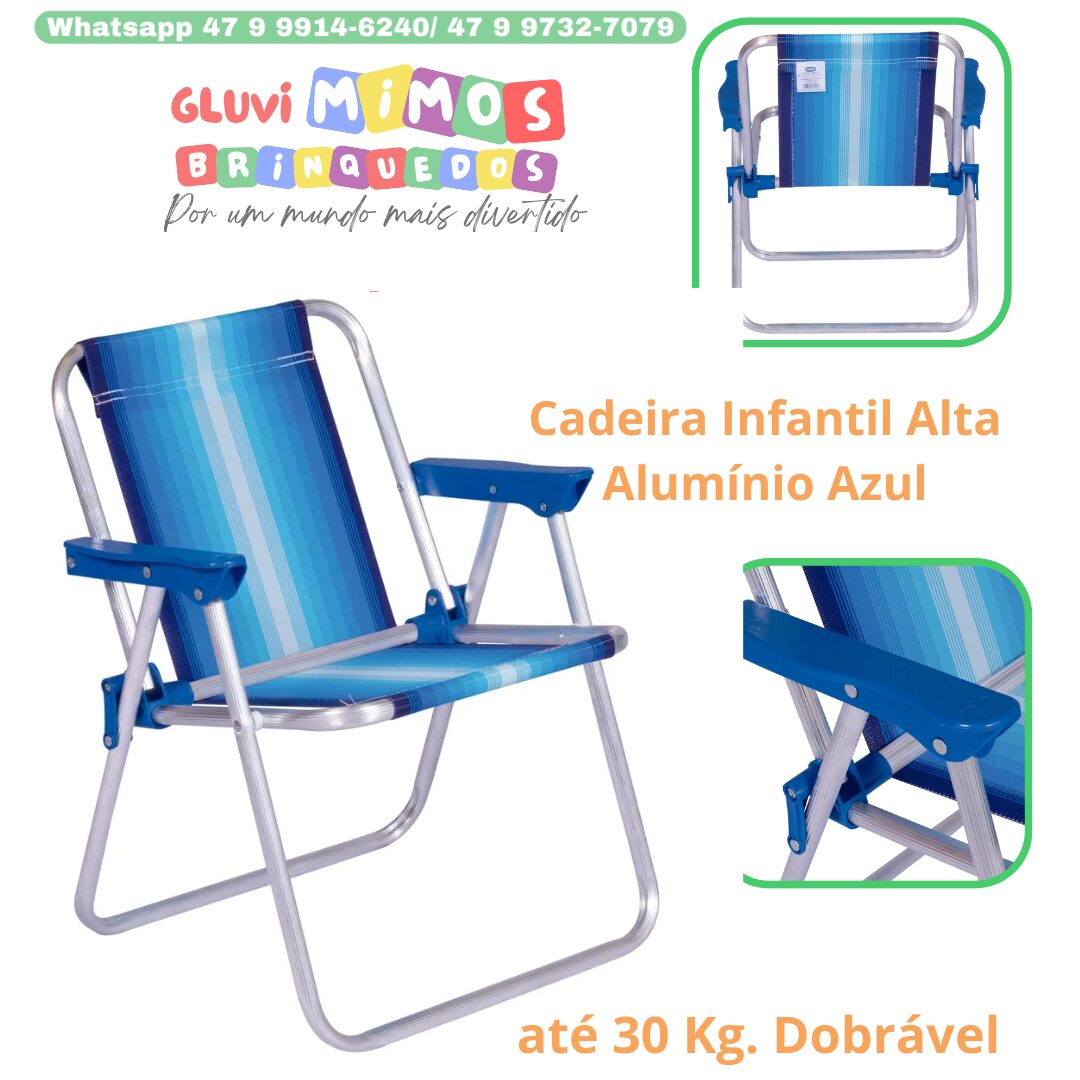 Cadeira de Praia Infantil Alta Alumínio Azul até 30 Kg. Dobrável