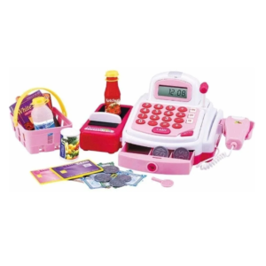 Caixa Registradora com balancinha, leitor, função calculadora e acessórios diversos para a criança brincar de fazer compras no mercado.