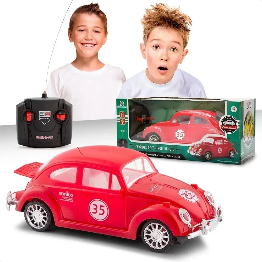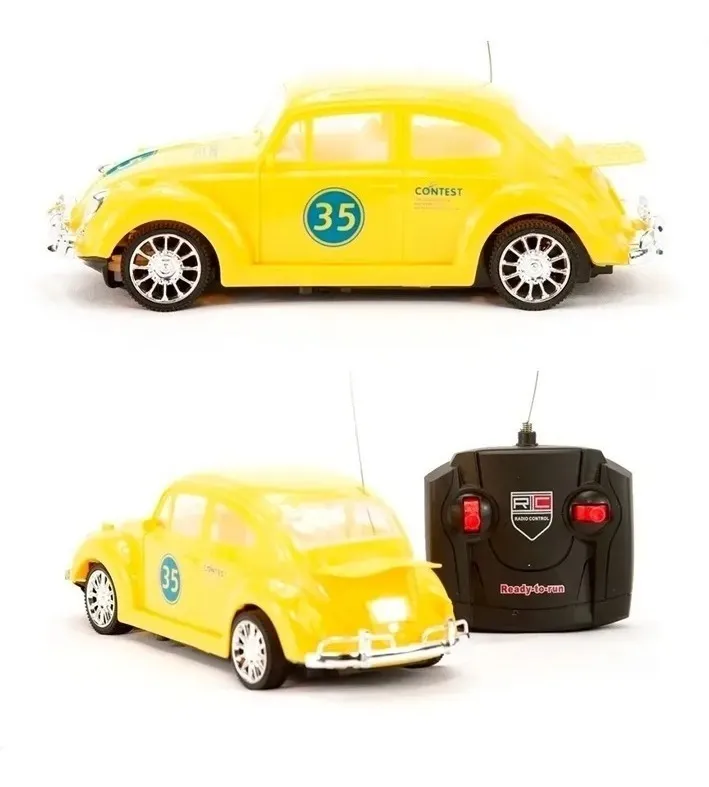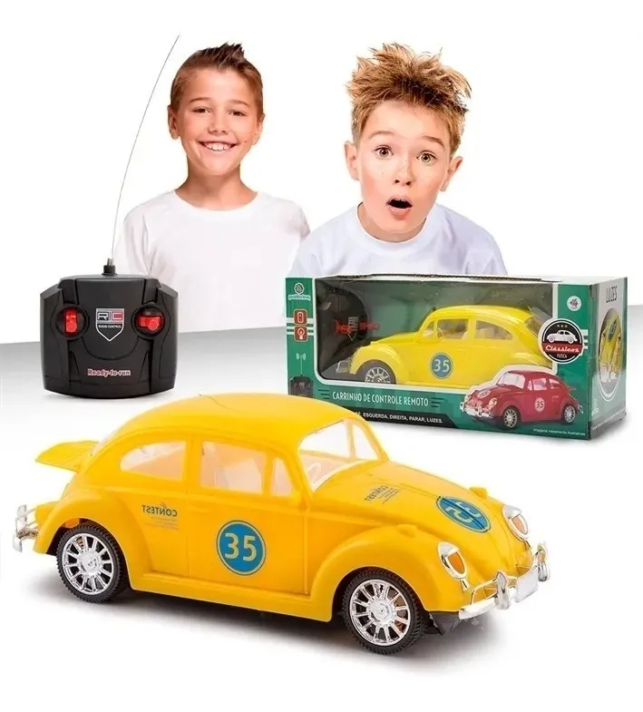 Carrinho De Controle Remoto Brinquedo Fusca Clássico Com Luz 7 Funções Cores Sortidas