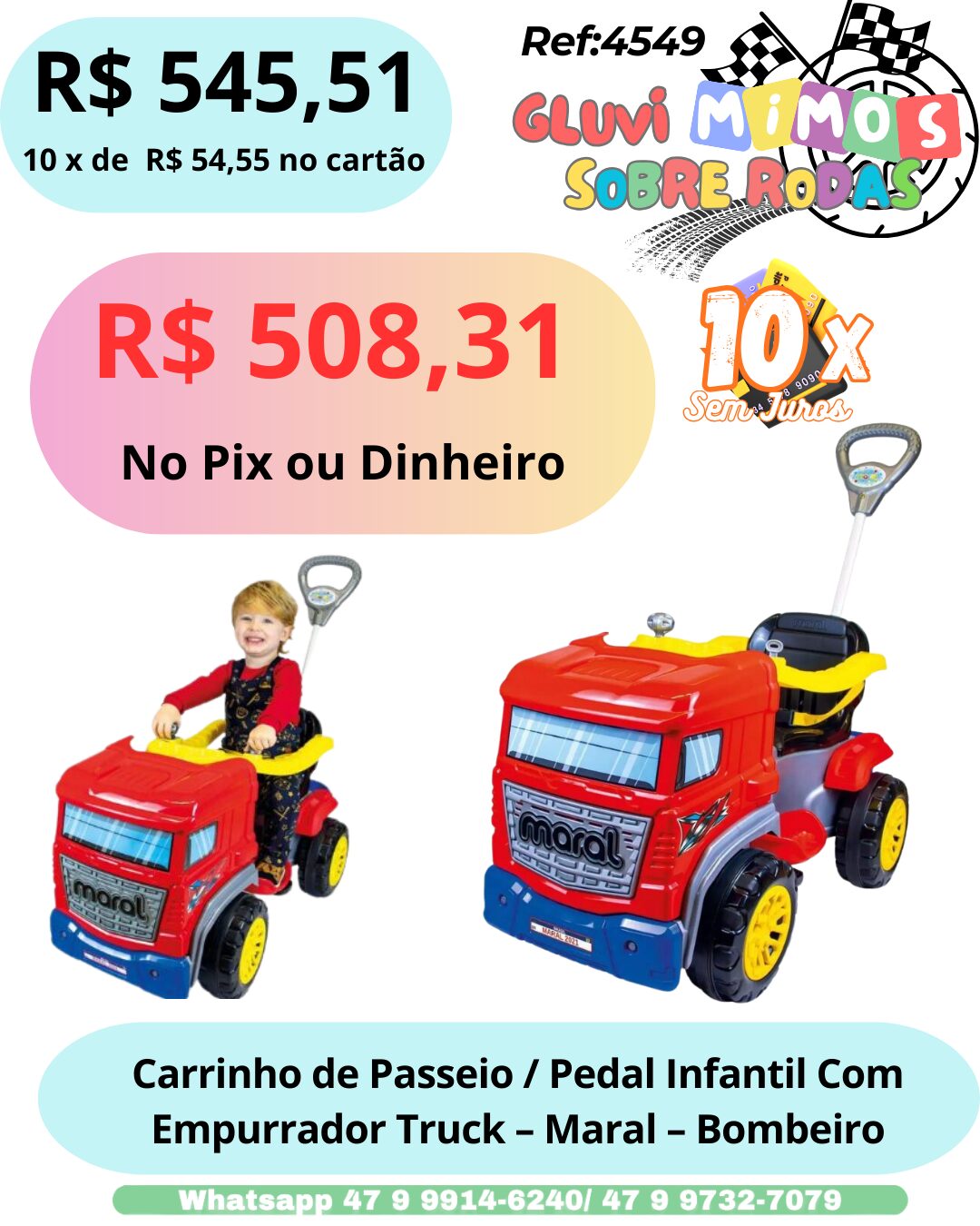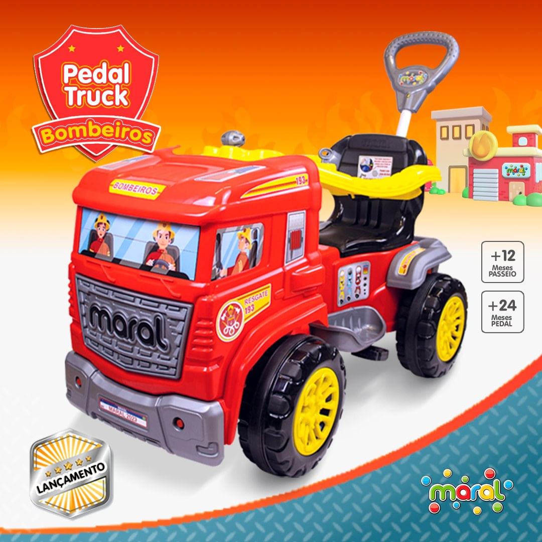 A diversão com o Carrinho de Passeio ou Pedal Truck – Maral está garantida! Este super brinquedo vem equipado com porta objetos, para seu pequeno levar seus brinquedos favoritos em seus passeios; pedal com eixo de aço, para ele pedalar a partir dos 24 meses; painel didático com chave e câmbio que fazem barulho de carro de verdade; apoio de pé, para a brincadeira ficar ainda mais segura; e o empurrador, para mamães e papais que amam levar seus pequenos para passear!