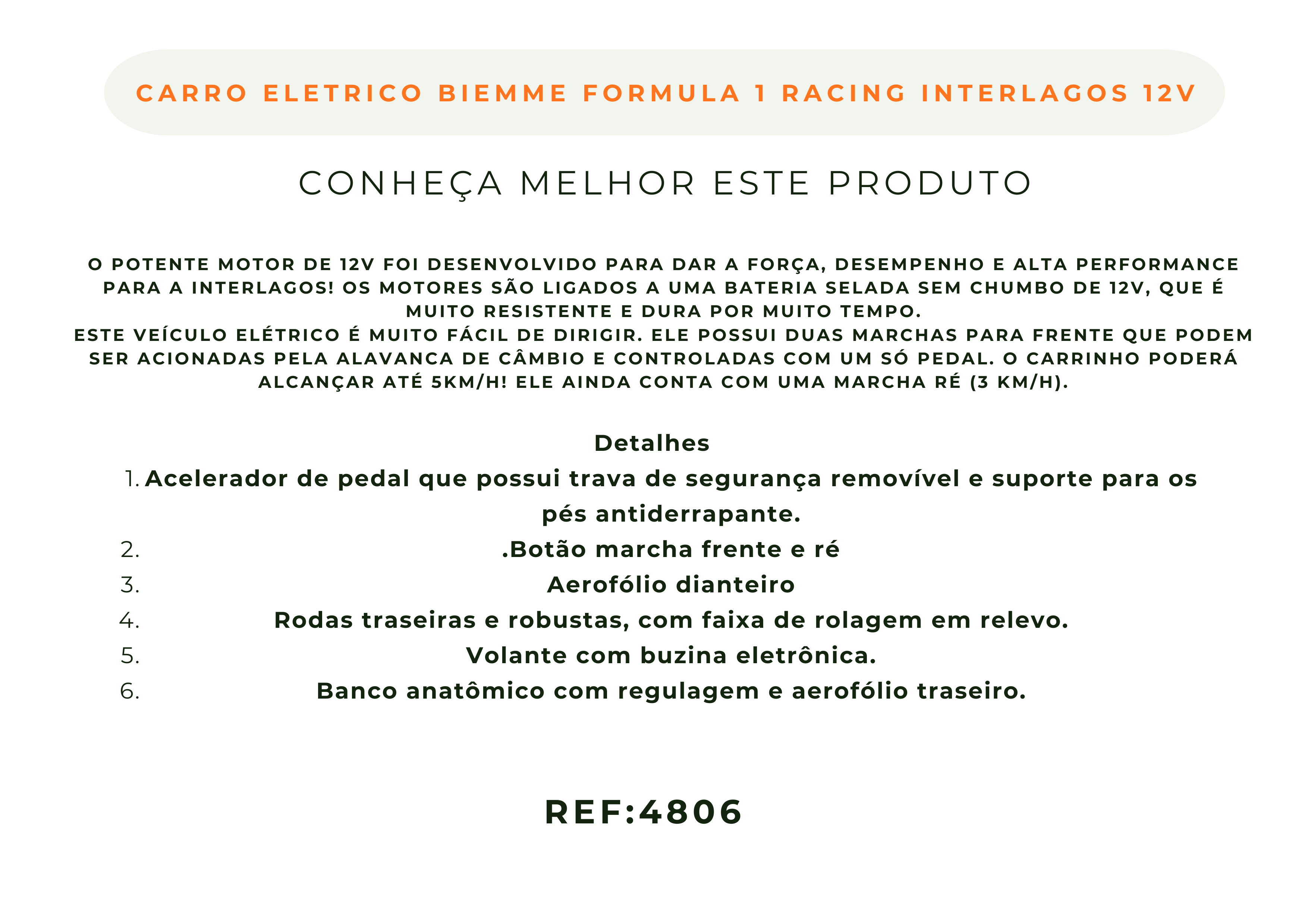 Sabe aquele presente INESQUECÍVEL que vai deixar a sua criança pulando de felicidade? A Maçã Verde Baby apresenta o incrível Carro Elétrico Formula 1 Racing Interlagos 12V da Biemme, o carrinho que vai encantar sua criança!