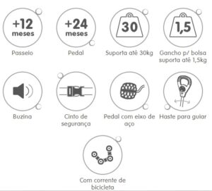 +24 Meses – Pedal – Você retira os acessórios e o pequeno pode pedalar por conta própria.