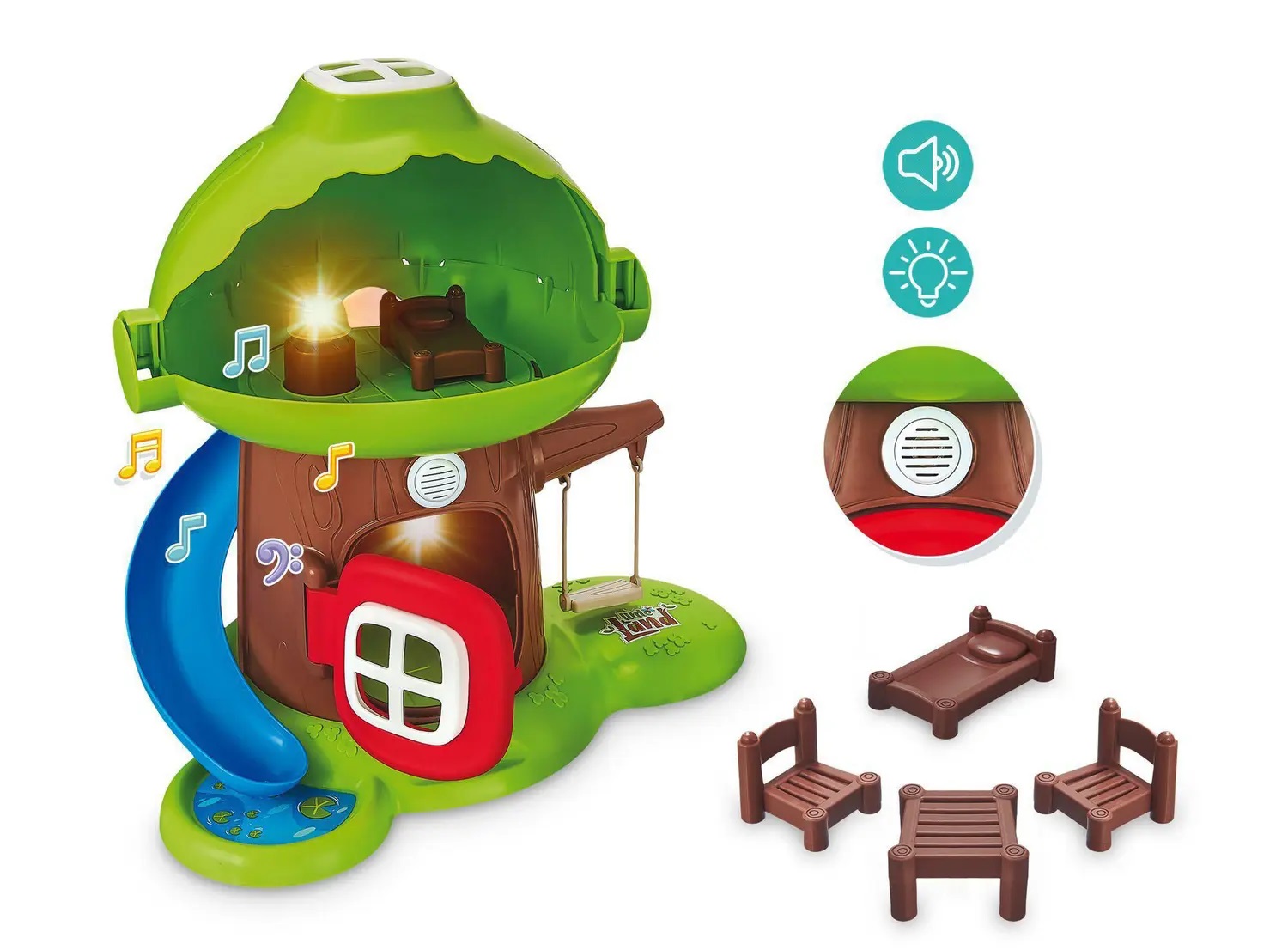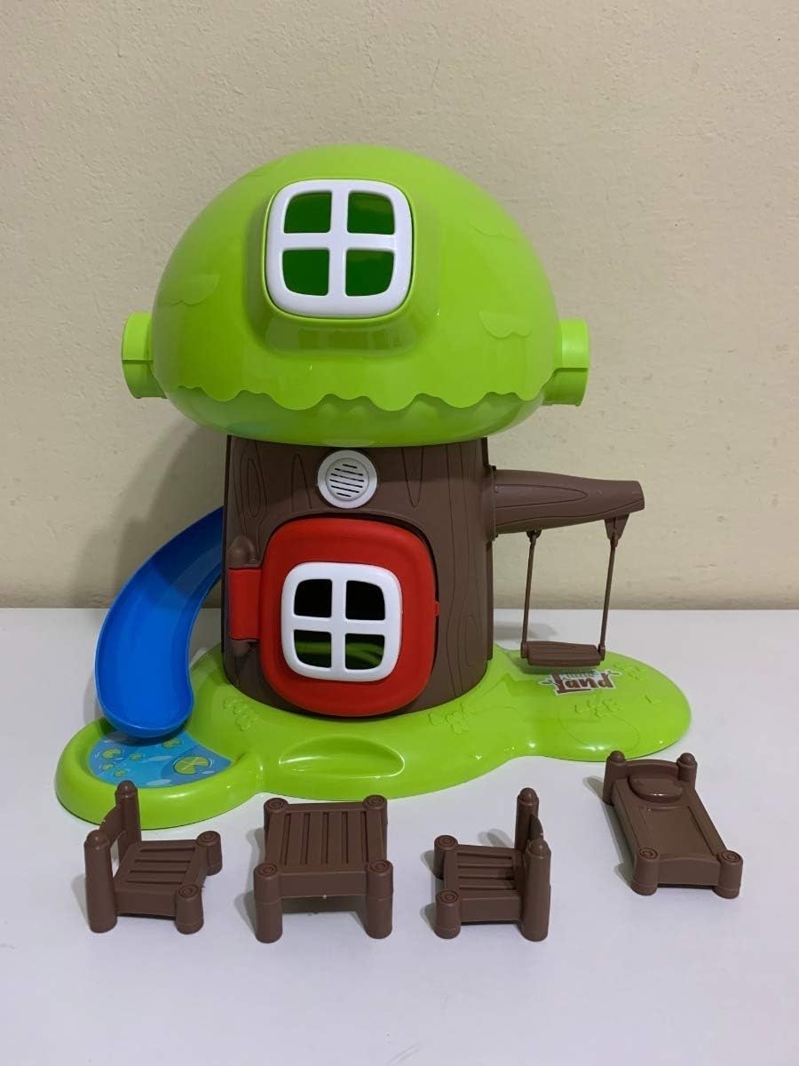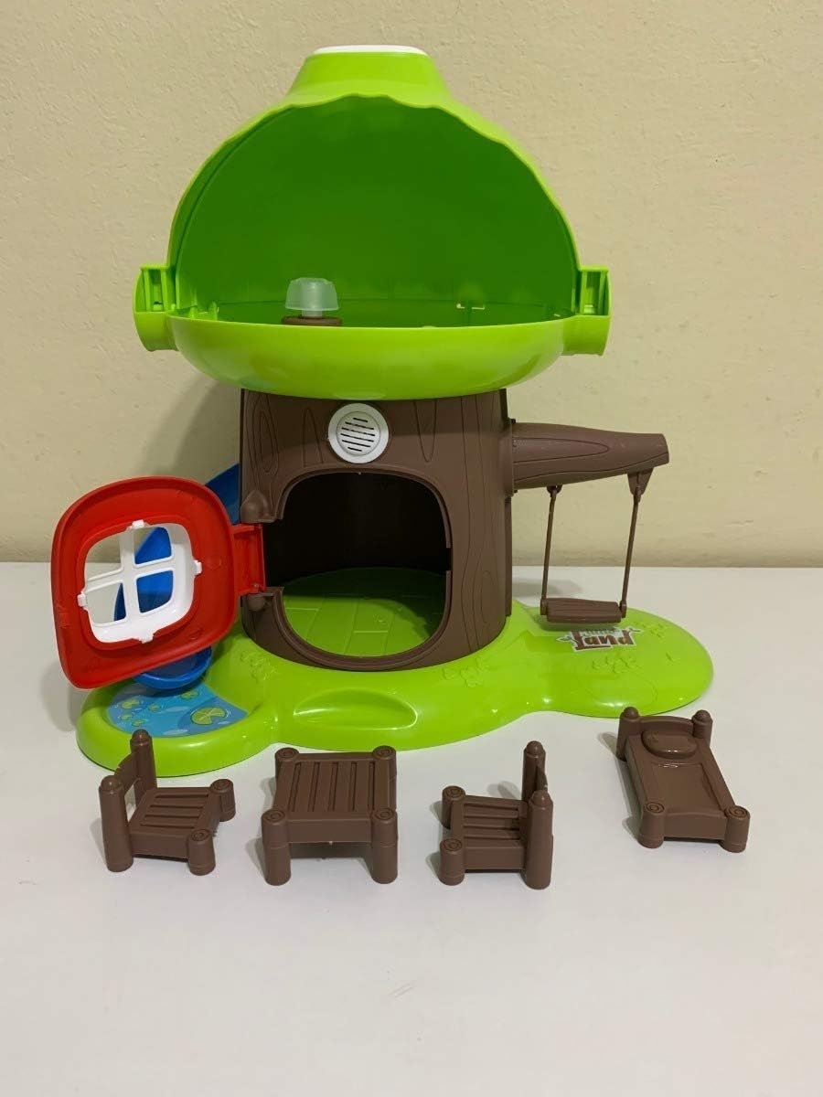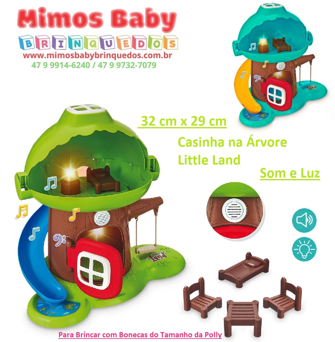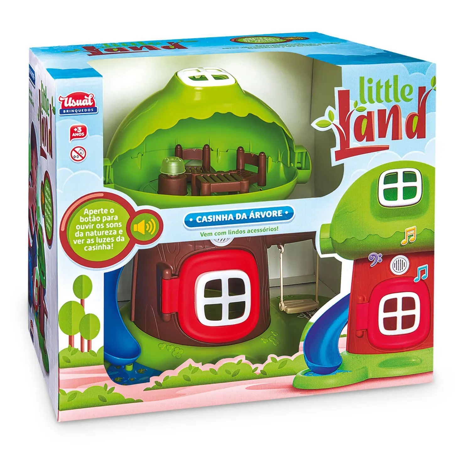 Casinha Na Árvore Parquinho Little Land Usual Brinquedos A Casa Na Árvore Little Land é acompanhada de diversos acessórios como balanço, escorregador e dispositivos de som e luz. Ao acionar o dispositivo que fica posicionado bem acima da portinha, acende a luz na parte superior, outra na parte inferior e também emite um som de um pássaro.Outros acessórios que acompanham essa linda casinha na árvore são 2 cadeiras, 1 mesa e 1 caminha. Na parte inferior da casinha temos a portinha que abre e fecha e na parte superior temos a janela. Na parte superior você pode abrir e fechar conforme está na imagem dos anúncios e também contém uma passagem para o escorregador que a contorna .Com essa casinha na árvore, brincar será muito mais divertido