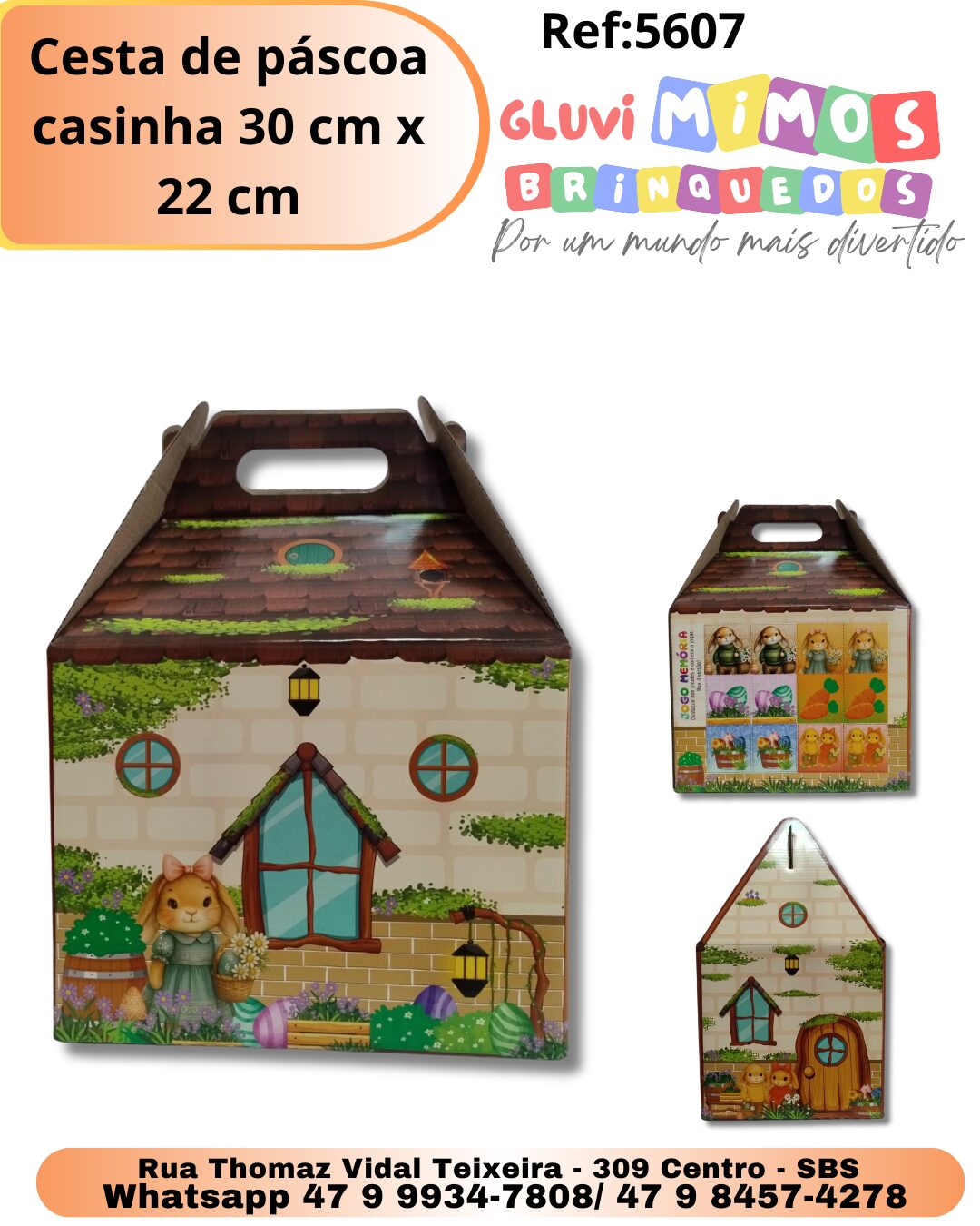 Cesta de páscoa casinha 30 cm x 22 cm