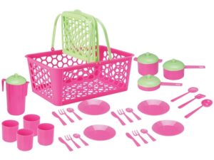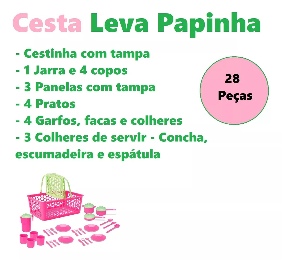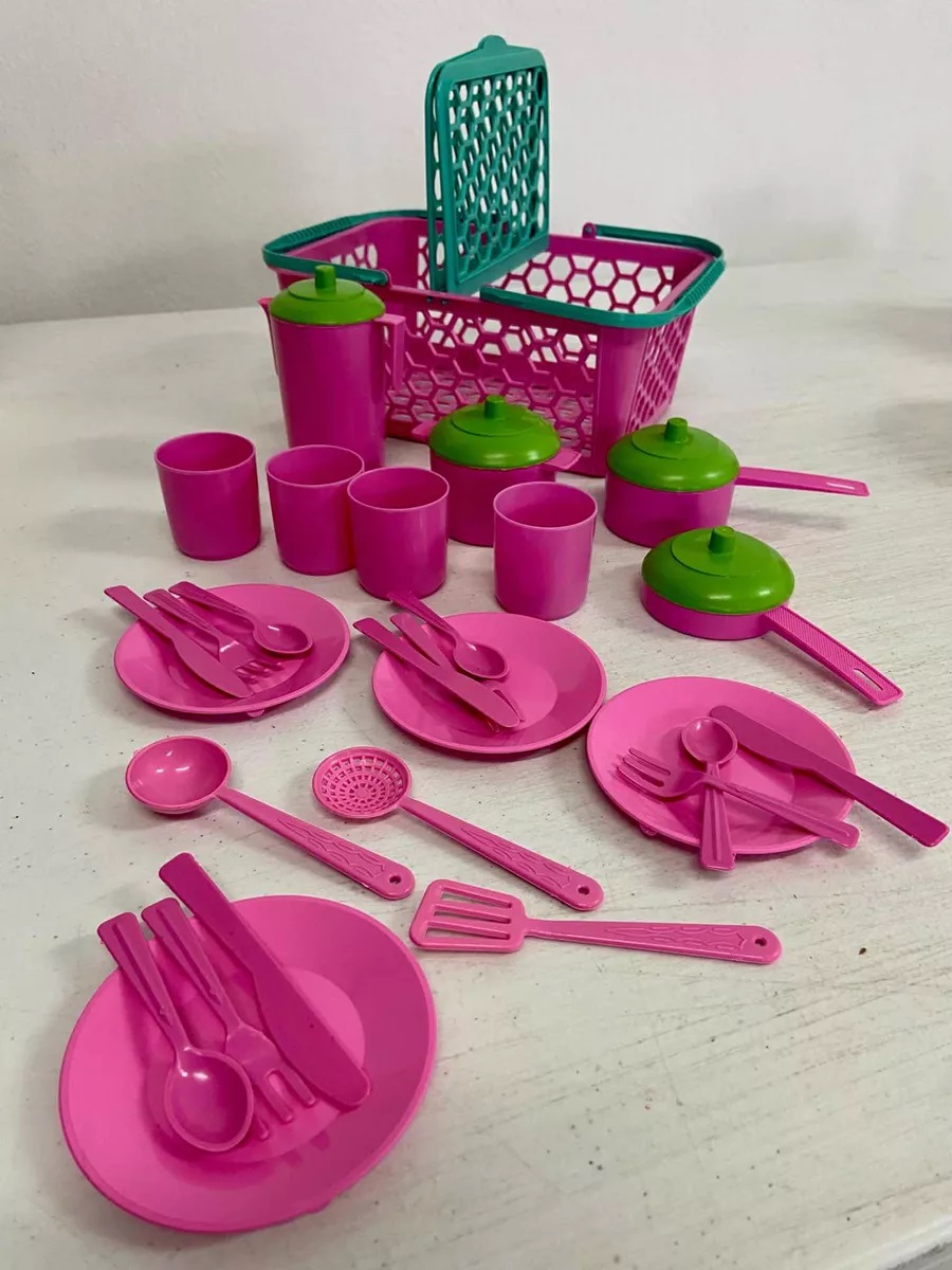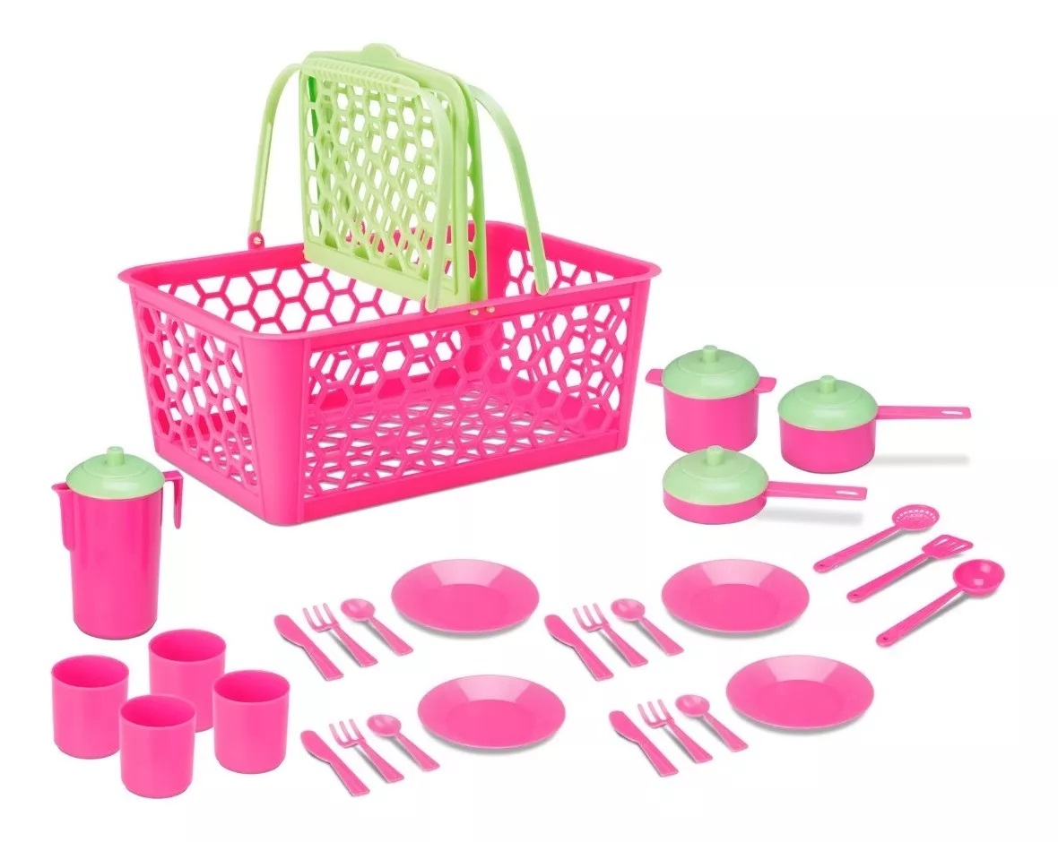 Esse kit de 28 peças é ótimo para brincar com as amiguinhas e bonecas. Pode ser um piquenique, um almoço, um jantar ou até mesmo um lanchinho.