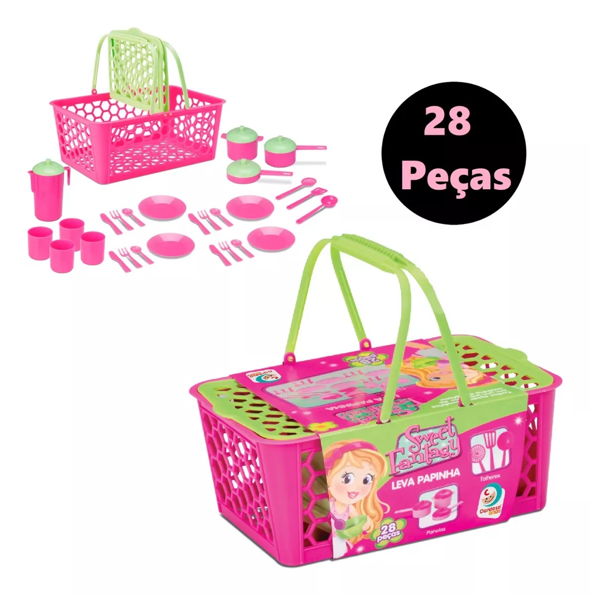 A Cestinha Sweet Fantasy Leva Papinha da Cardoso Toys vem recheada de utensílios que estimulam a imaginação e criatividade das crianças.