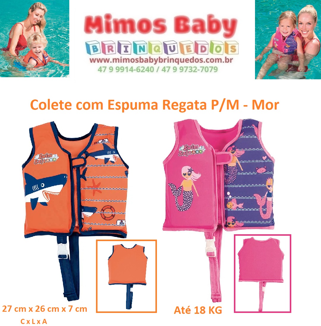 O Colete com Espuma Regata P/M é garantia de segurança e conforto na hora das crianças aproveitarem bons momentos na água! Completo e muito resistente, possui estrutura firme com costura reforçada, além de corte anatômico e confortável. A regata permite maior liberdade de movimento para a criança e a tira regulável de segurança, juntamente com o fecho em zíper, proporciona melhor ajuste ao corpo e firmeza. Produzido em poliéster, polietileno expandido e polióxido de metileno, suporta até 18Kg e é indicado para maiores de 3 anos. Perfeito para proteger os pequenos durante o verão, esse colete está disponível nas cores laranja com azul marinho, com estampa de tubarão, e rosa com lilás, com estampa de sereia.