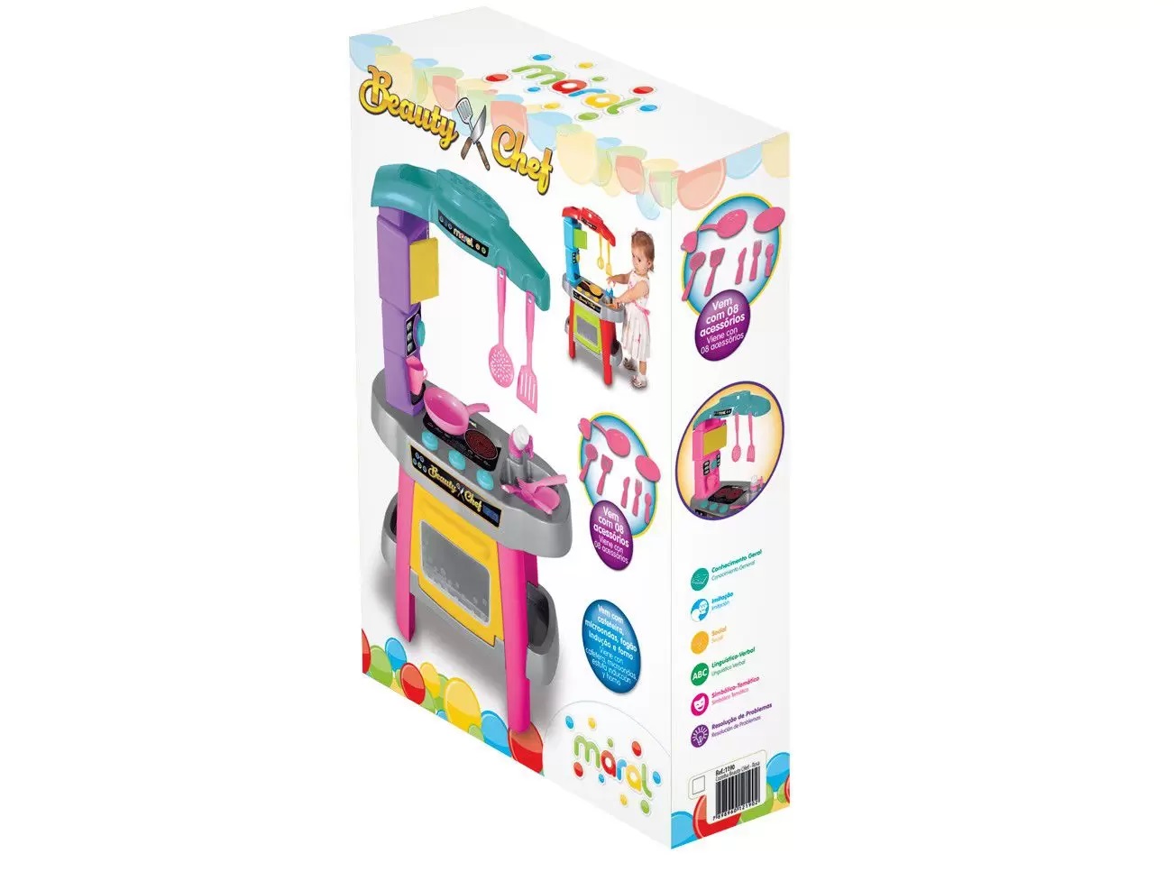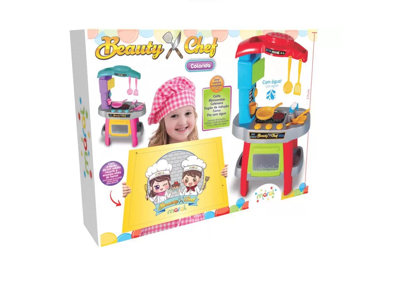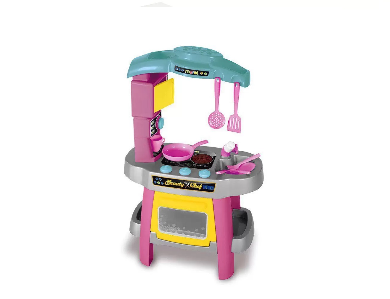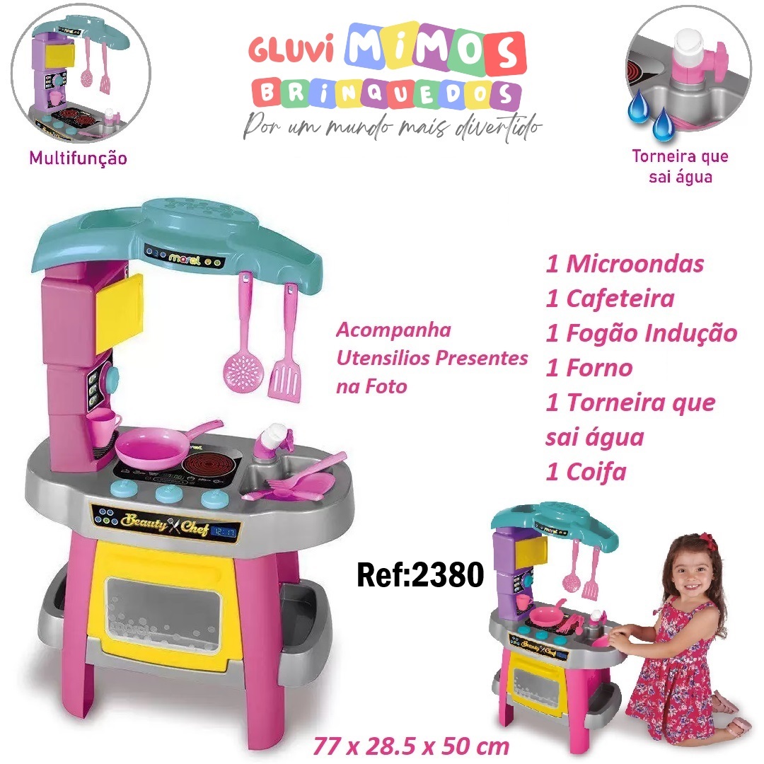 Com a encantadora cozinha Beauty Chef, as crianças podem aperfeiçoar suas habilidades culinárias, e preparar deliciosas receitas para toda a família. Enquanto a mamãe ou o papai cozinham de verdade, os filhos exploram o faz de conta criando suas próprias receitas, aguçando assim a imaginação e criatividade.
