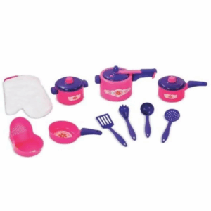 AS MENINAS VÃO PREPARAR DELICIOSAS RECEITAS COM ESTE KIT DE PANELINHAS IGUAIS AS DA MAMÃE. PANELA DE PRESSÃO, CAÇAROLA, PANELA FUNDA COM TAMPA, FRIGIDEIRA, ESCORREDOR DE ARROZ, LUVINHA EM TECIDO E QUATRO TALHERES GRANDES (ESCUMADEIRA, CONCHA, ESPÁTULA E PEGADOR DE MACARRÃO).