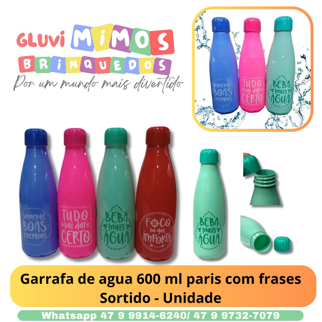 Garrafa de agua 600 ml paris com frases Sortido – Unidade