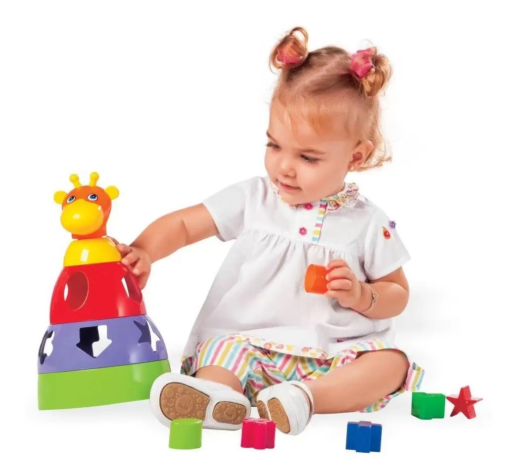 Divertida Girafa Didática Brinquedo Educativo Com Blocos Mercotoys para empilhar, encaixar e balançar!