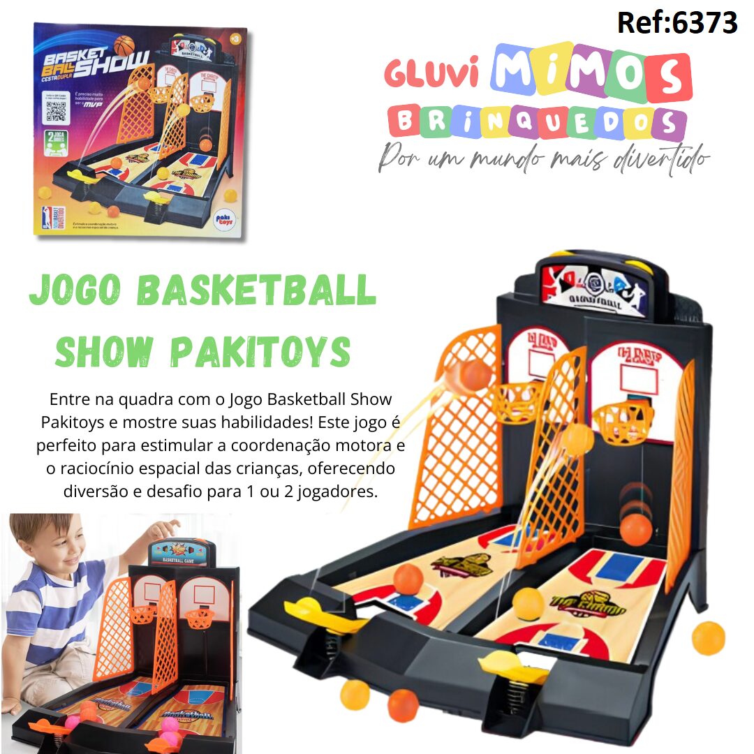 Entre na quadra com o Jogo Basketball Show Pakitoys e mostre suas habilidades! Este jogo é perfeito para estimular a coordenação motora e o raciocínio espacial das crianças, oferecendo diversão e desafio para 1 ou 2 jogadores.