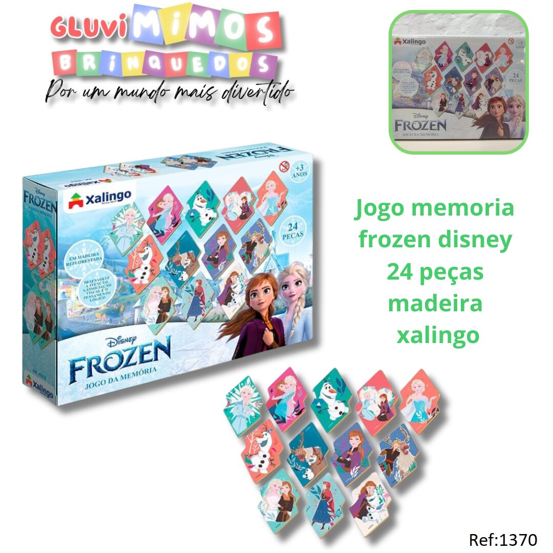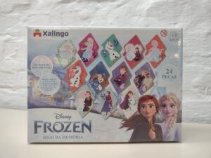 O Jogo de memória é um jogo tradicional e fundamental para a formação educacional e cognitiva das crianças. Jogar com seus personagens Elsa e Ana – Frozen estimula ainda mais a criança. Suas peças em madeira facilitam o manuseio. Recomendado para crianças acima dos 3 anos.