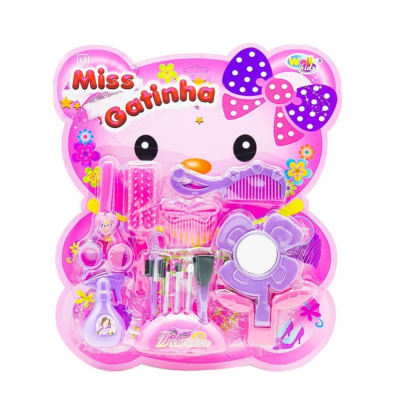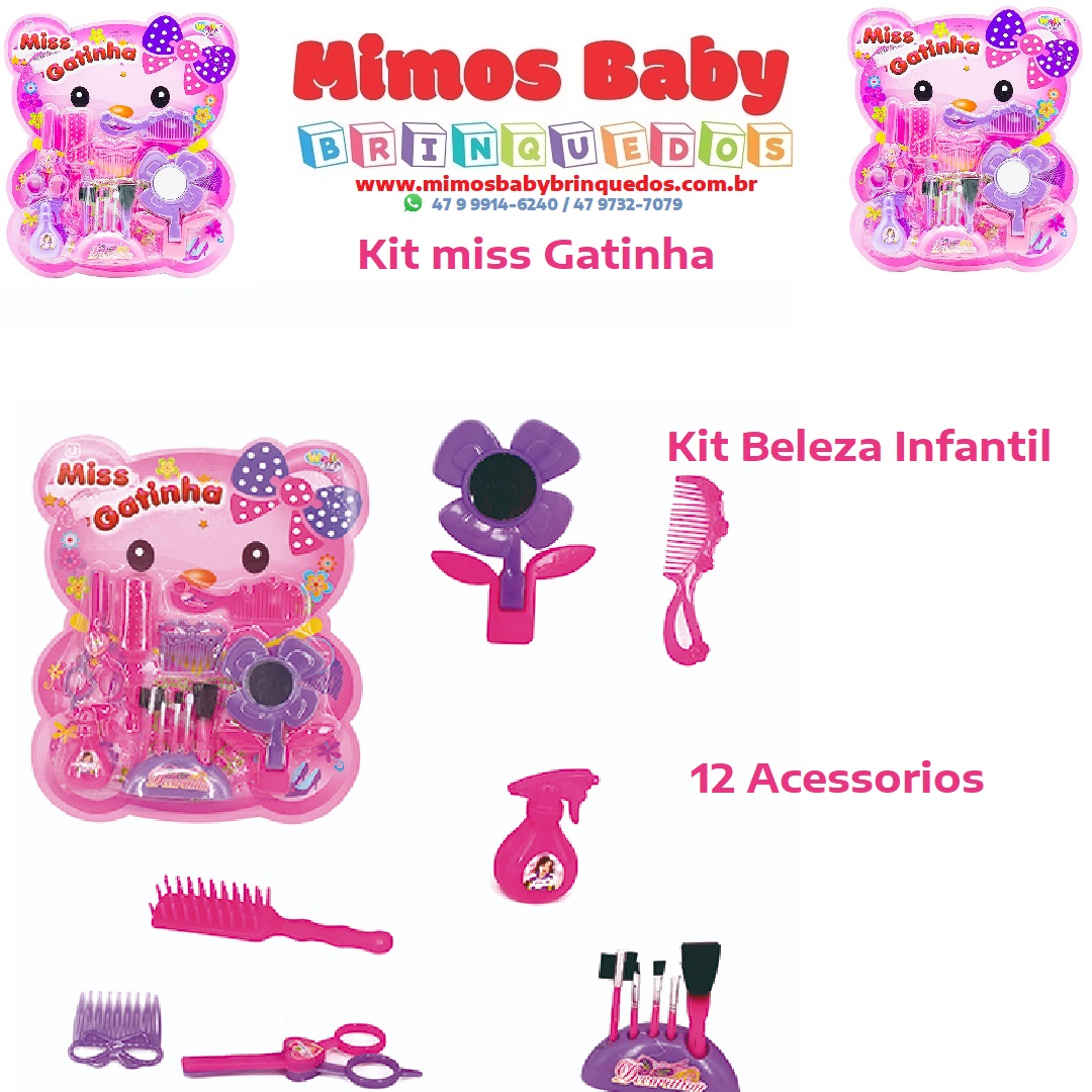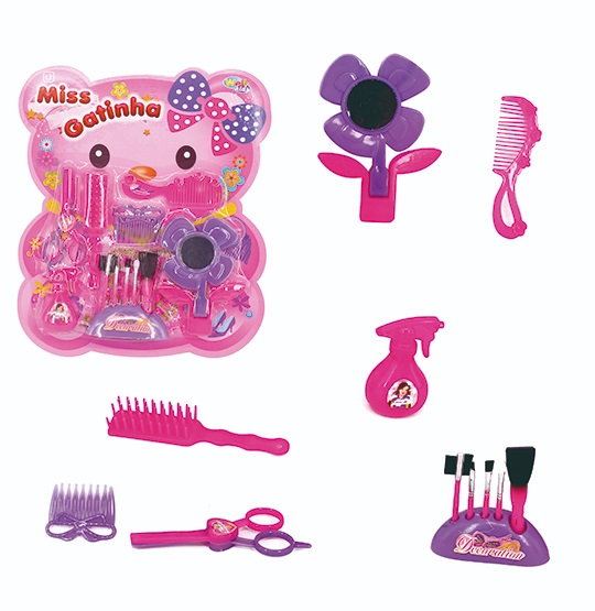 KIT BELEZA INFANTIL COM ESPELHO + ESCOVA E ACESSORIOS MISS GATINHA 12 PECAS