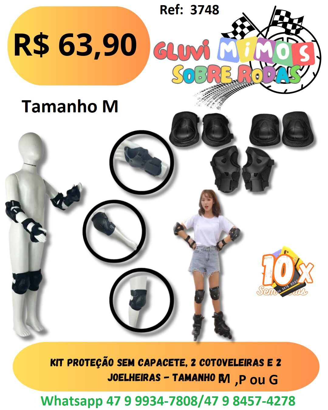 Kit Proteção sem capacete, 2 Cotoveleiras e 2 Joelheiras – Tamanho M,P ou G