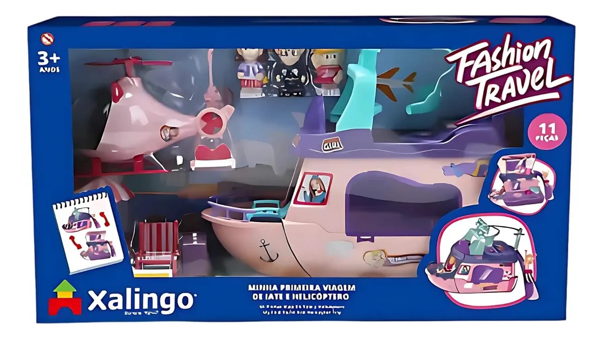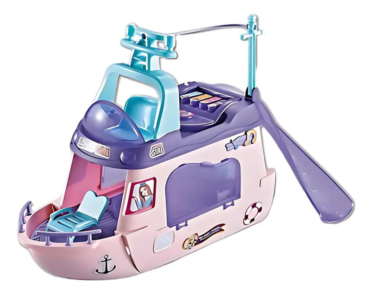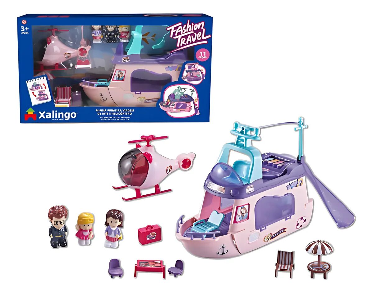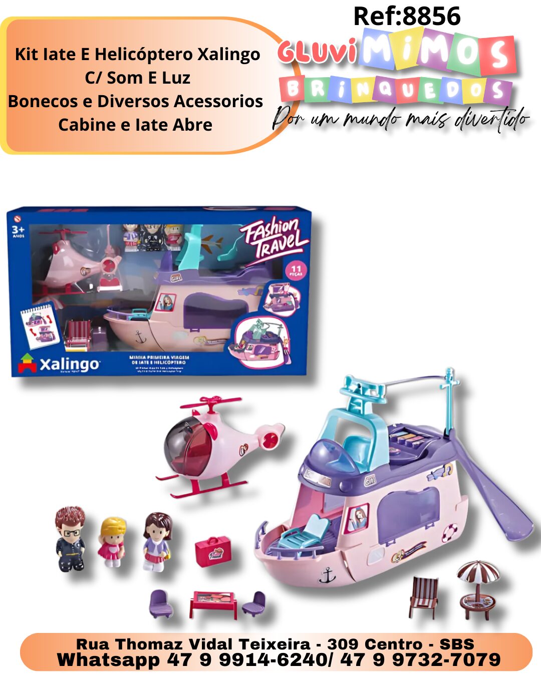 Kit Iate E Helicóptero Xalingo C/ Som E Luz Bonecos e Diversos Acessorios Cabine e Iate Abre