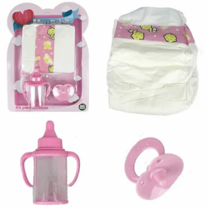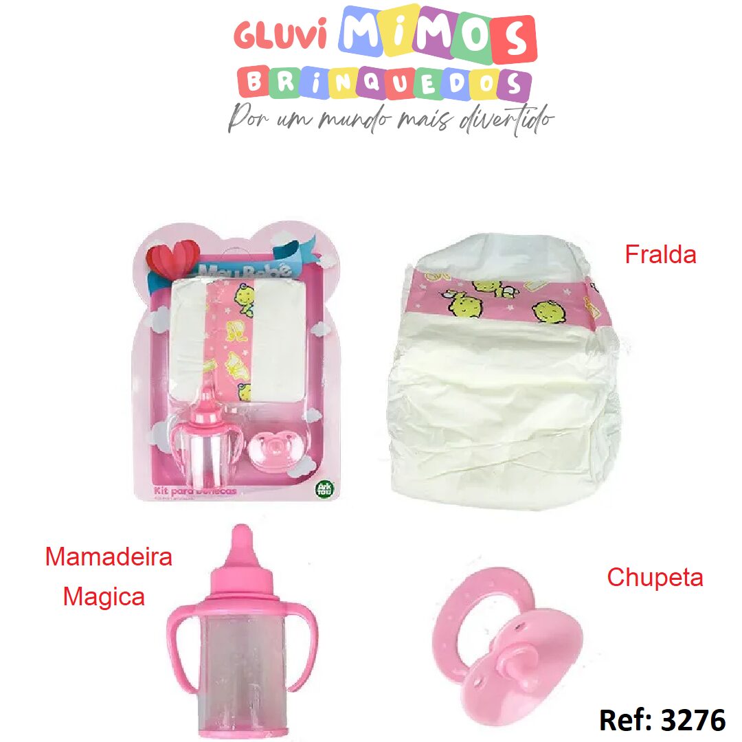 Kit Mamadeira Magica Chupeta E Fralda P/ Boneca Bebe Menina