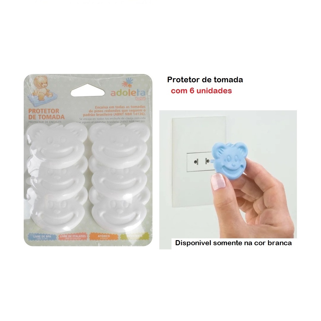 Proteja suas tomadas e evite acidentes com o bebê, principalmente quando ele começar a engatinhar e andar. O Protetor de Tomadas Adoleta Bebê vem em uma embalagem com seis peças e encaixa tanto no antigo quanto no novo padrão de tomadas. Cuidar é sempre bom!Os produtos Adoleta Bebê são desenvolvidos para gerar conforto e bem-estar aos bebês, com design em linhas arredondadas, ausência de cantos que podem machucar os pequenos e estrutura perfeita para garantir a resistência necessária em cada produto.