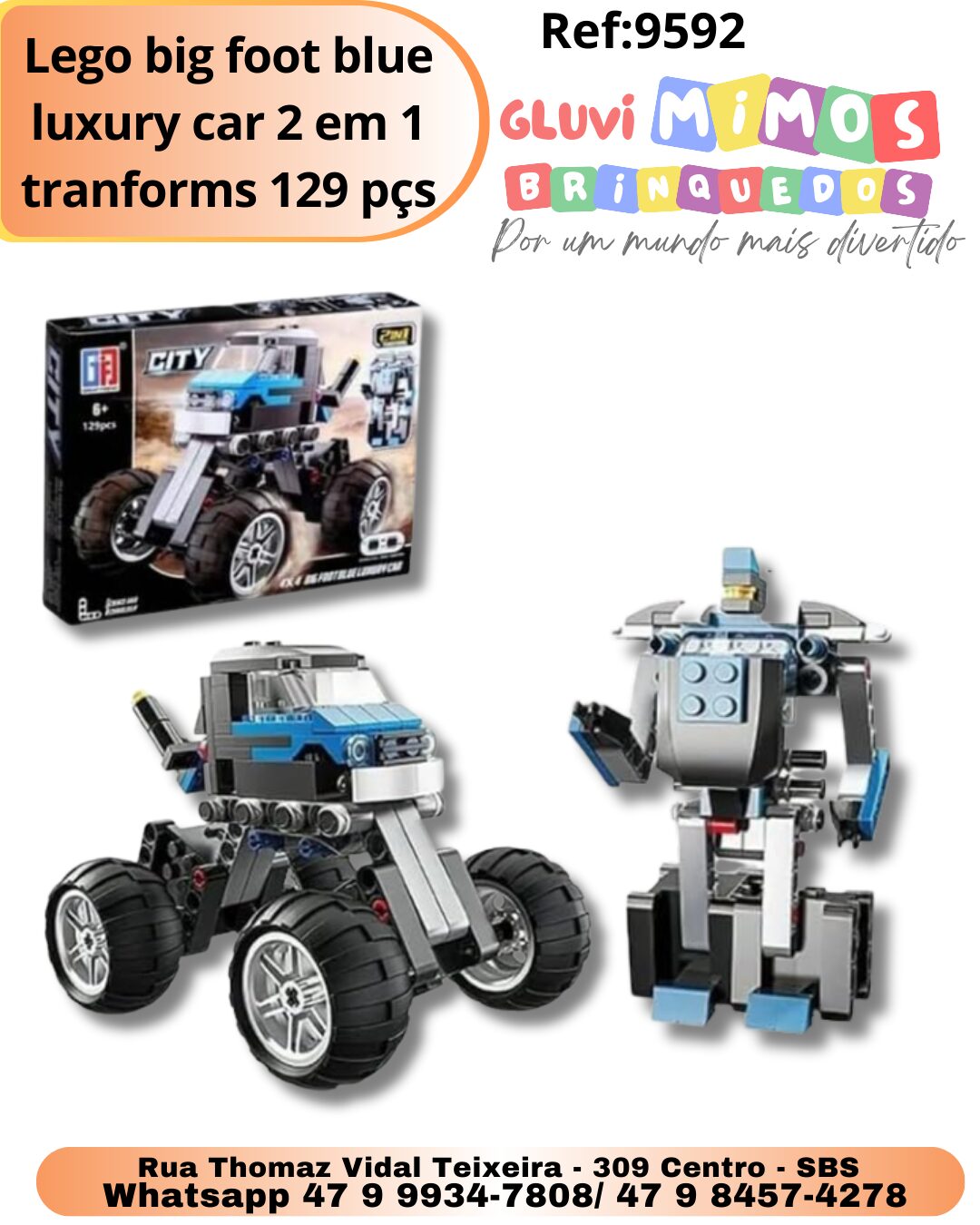 Seja o primeiro a avaliar “Lego big foot blue luxury car 2 em 1 tranforms 129 pçs”