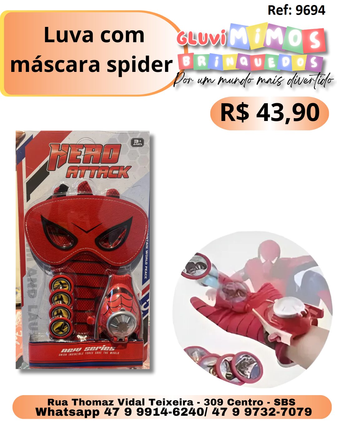 Seja o primeiro a avaliar “Luva com máscara spider”