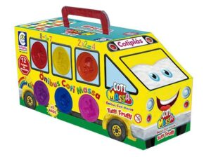 O onibus coti massa vem com 12 potinhos de massinhas de tutti frutti