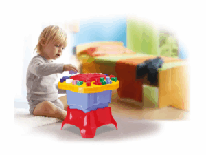 O modelo vem com peças a serem encaixadas e bordas arredondadas, garantindo maior segurança, sendo que em sua parte interna pode ser utilizada como porta objetos.