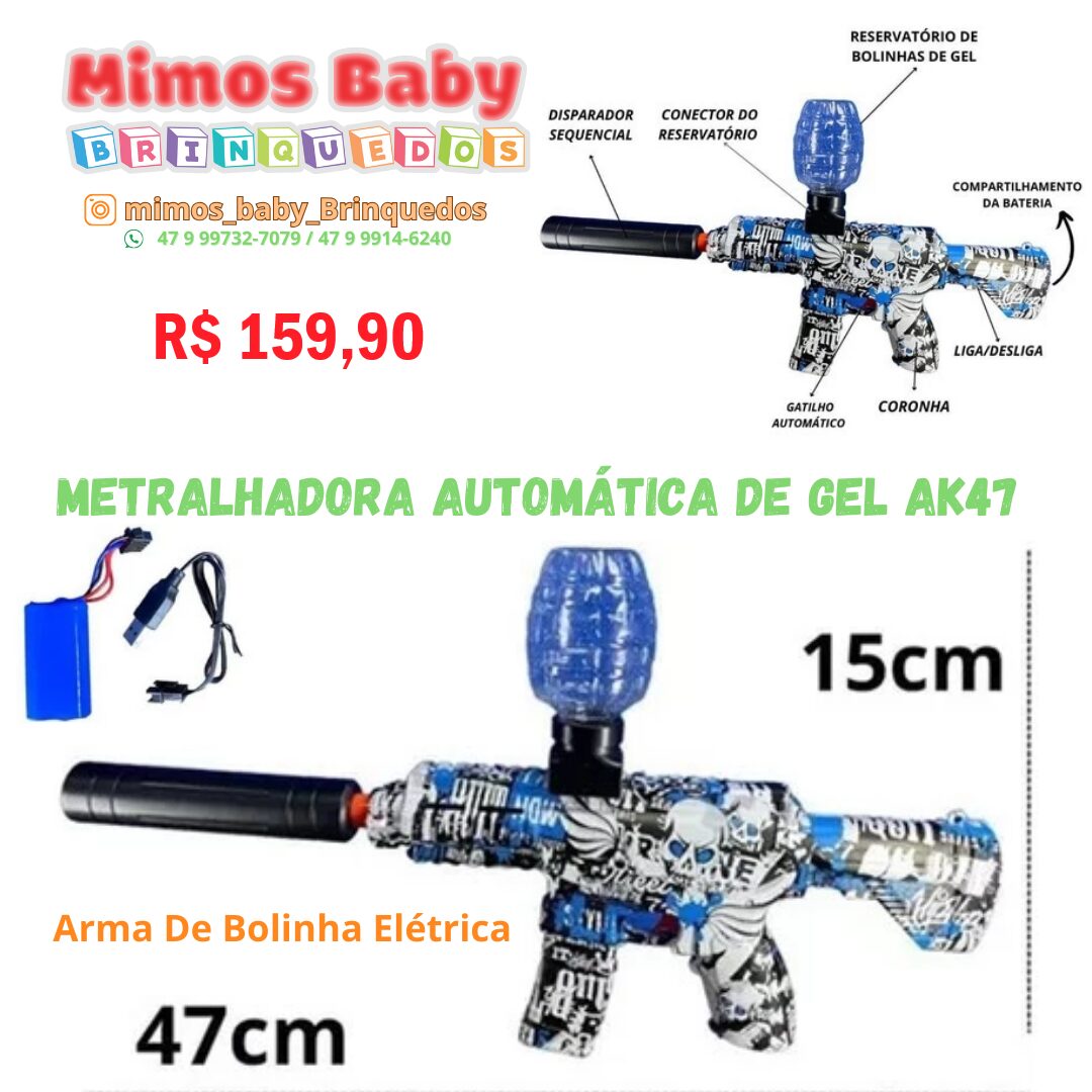 Prepare-se para a batalha mais emocionante com a nossa incrível Arminha de Brinquedo que Solta Bolinhas de Gel Automatica! Mais do que apenas uma brincadeira, é uma experiência de aventura e estratégia que vai transformar qualquer espaço em um campo de batalha emocionante. Adquira a sua Arminha de Brinquedo hoje e leve a diversão a um novo patamar. Deixe que as crianças se tornem os heróis da batalha, defendendo territórios e criando memórias emocionantes. A batalha está prestes a começar – esteja preparado para a ação! Como usar: > Passo 1: Monte A sua AK conforme as imagens e mexa no interruptor para ligar; > Passo 2: Coloque as bolinhas mergulhadas em água por no mínimo 1 hora, até que cheguem em uma medida entre 7 e 8 mm; > Passo 3: Ponha as bolinhas no tambor e rosqueie para fechar. OBSERVAÇÕES: – As cores são enviadas conforme disponibilidade de estoque – Não deixe a água entrar no funil ao encher gotas de água. antes de usar – Caso não seja utilizado por mais de 2 horas as bolinhas de gel, as mesmas devem ser removidas do compartimento e descartadas – Quando não estiver utilizando o produto a bateria deve estar desconectada e fora do compartimento do Rifle.