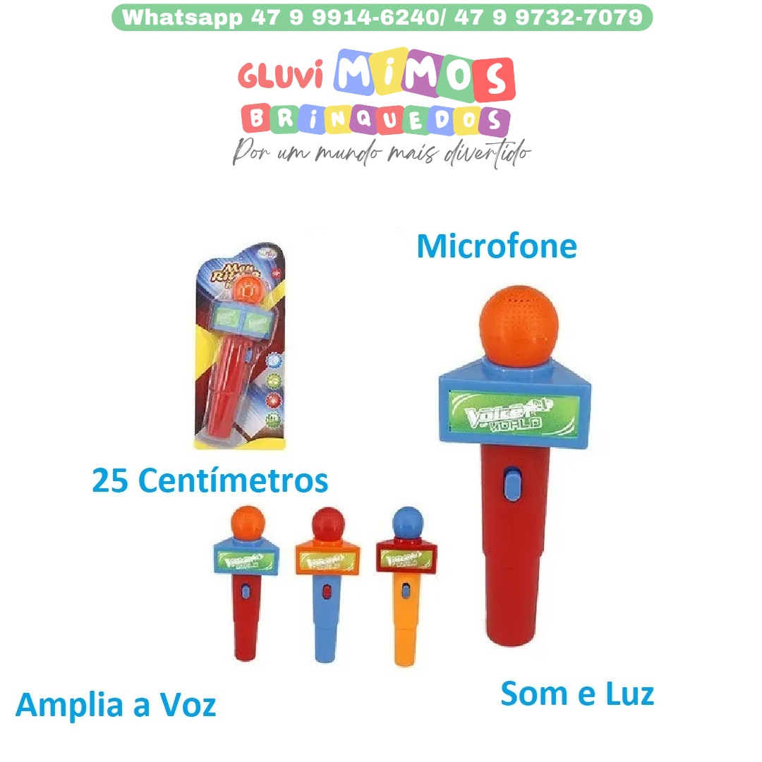 Microfone Infantil Com Luz Musica Som A Pilha – Amplia a Voz – 25 Centímetros