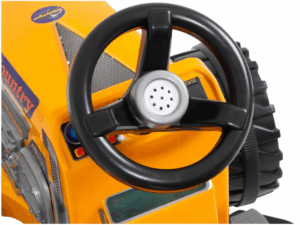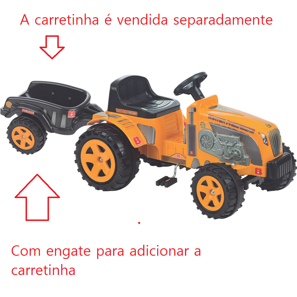 Ah… e tem mais! O Trator Country Amarelo Elétrico 6v tem ainda um encaixe na parte traseira para engatar a caçambinha preta da Biemme