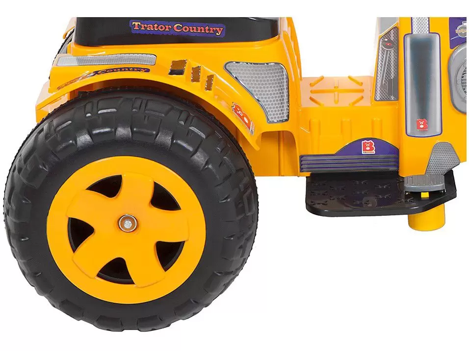 O Trator Country Amarelo Elétrico 6v possui rodas bem resistentes, largas e fortes, com faixa de rodagem em relevo e calota colorida. As rodinhas e o próprio mini Trator Country Amarelo Elétrico 6v são de plástico injetado e reforçado (poliuretano) e suportam os mais diferentes tipos de terrenos! Seu filho ou sua filha vai ter um brinquedo por toda a infância, para brincar no parque, no quintal e até na cidade!*