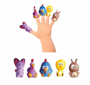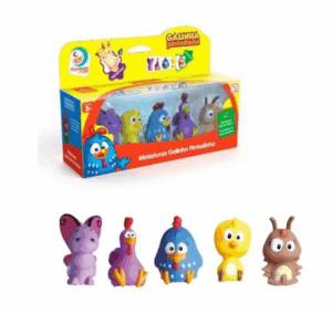 Uma linda coleção de bonequinhos dos personagens da Galinha Pintadinha . Eles são de vinil atóxico (macio e fofinho), tem aproximadamente 5 cm de altura e podem ser usados na água também, para brincar no banho.