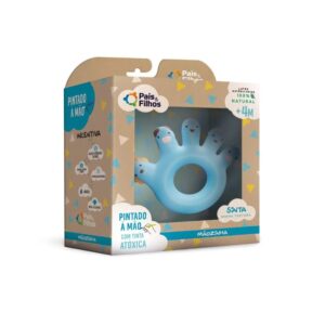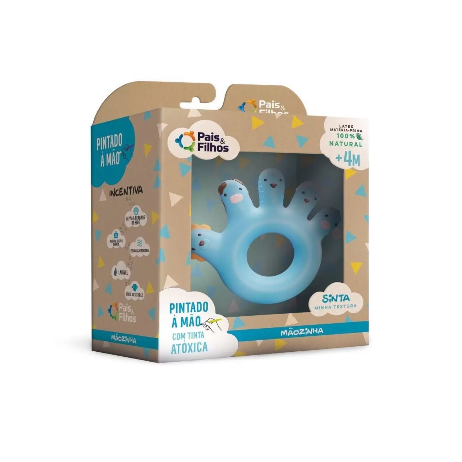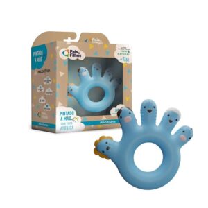 Pais e filhos – mordedor de látex mãozinha pintado à mão azul