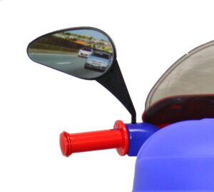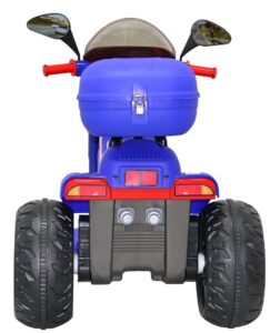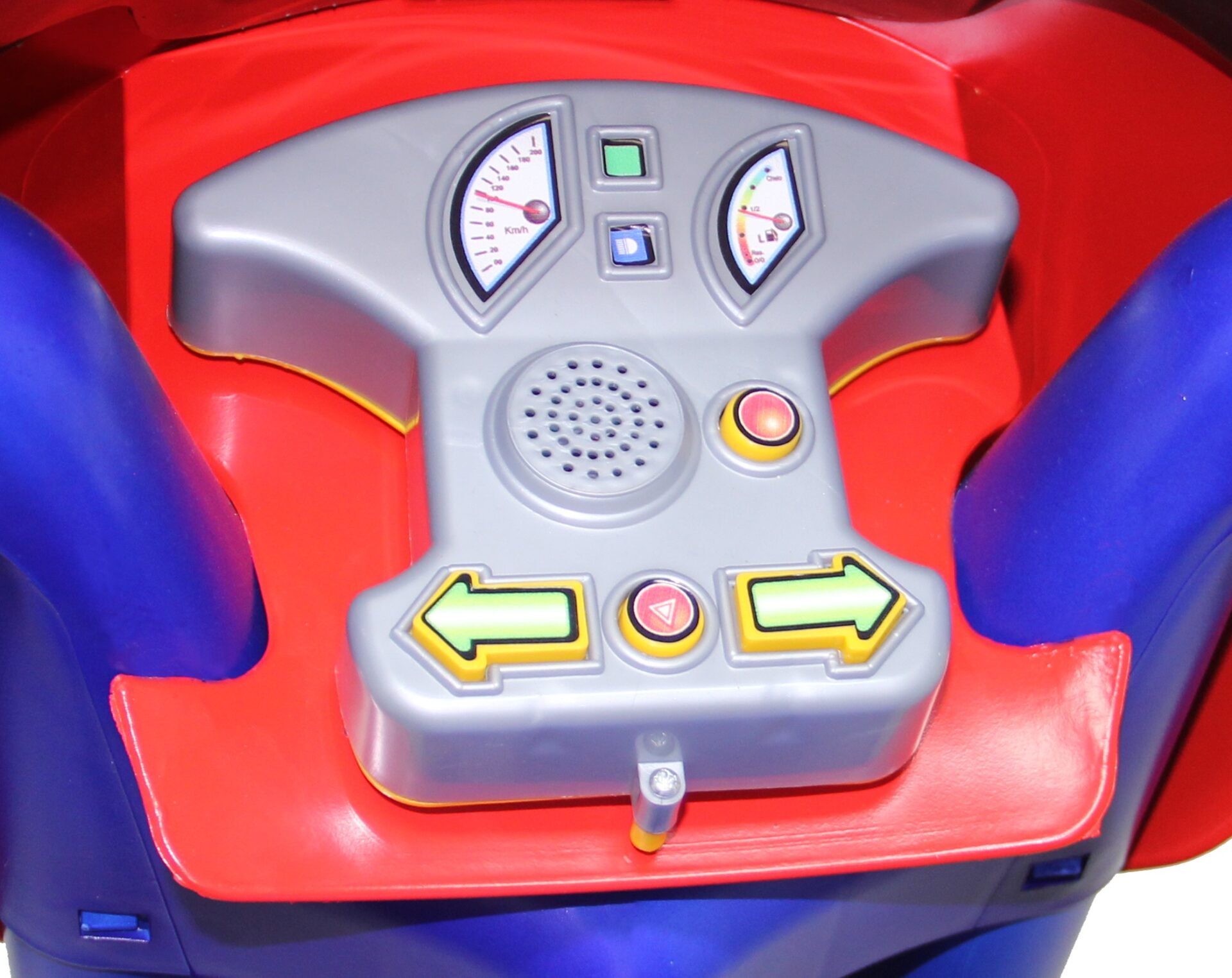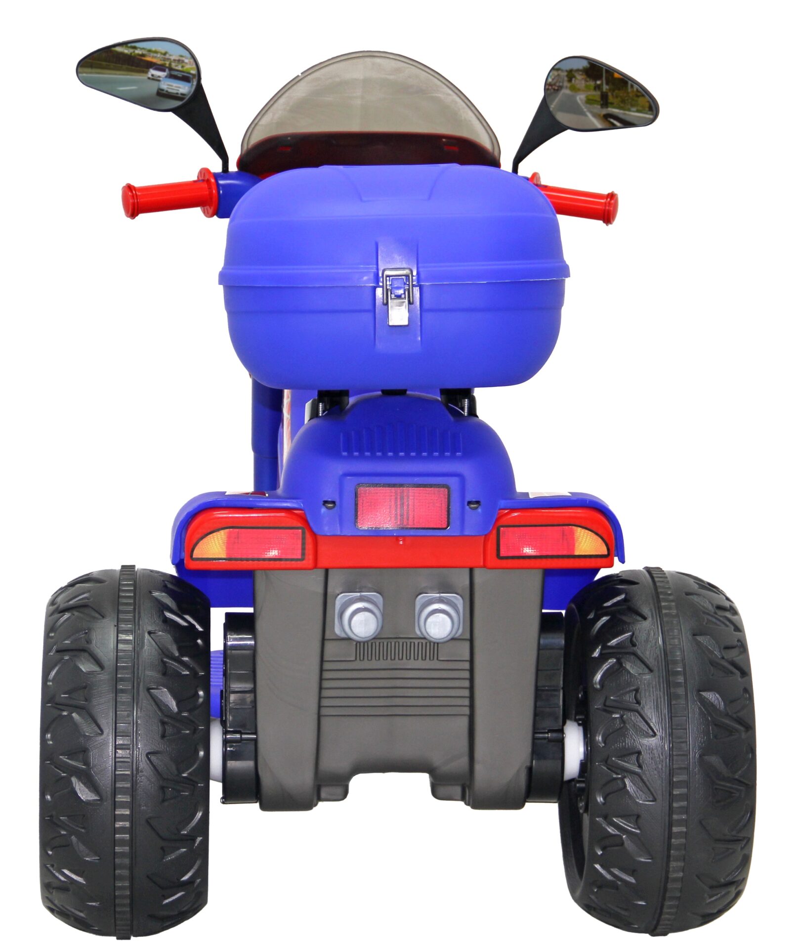- Motor lateral decorativo, acelerador de pedal, possui trava de segurança removível e suporte para os pés antiderrapante.