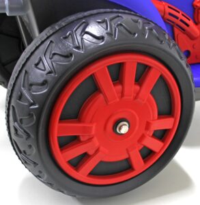 - Rodas grandes e resistentes com calotas e cinta de borracha.
